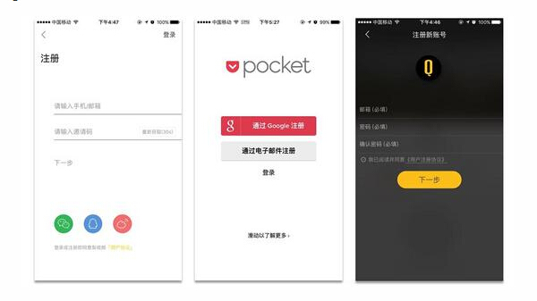 邮箱注册是pc端最常见的注册方式之一,沿用到移动端产品,大部分产品仍然提供“邮箱+密码”的登录方式。