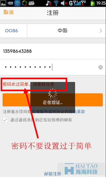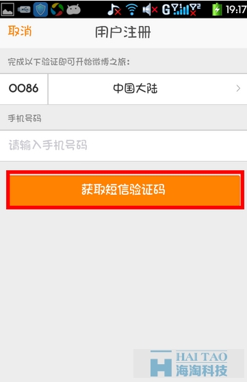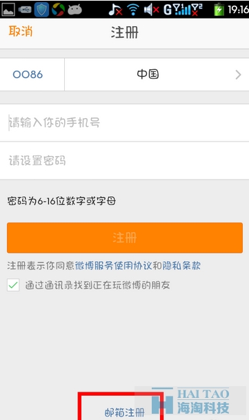 海淘科技通过本图文教程教你使用手机新浪微博客户端注册账号: