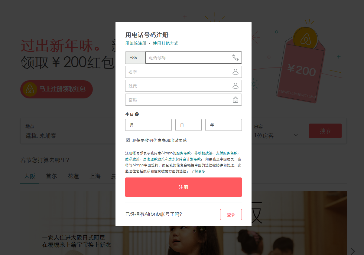 随着用户到达注册页面或注册窗口,这里可能有更多的空白空间可以部署优惠信息和会员政策,帮助正在注册及即将成为会员的用户了解未来将享受到的福利。当然用户也可能会通过点击活动图片进入活动页,注册流程的流失率会有一定增加,网站需要衡量是否在注册过程中增加活动链接。