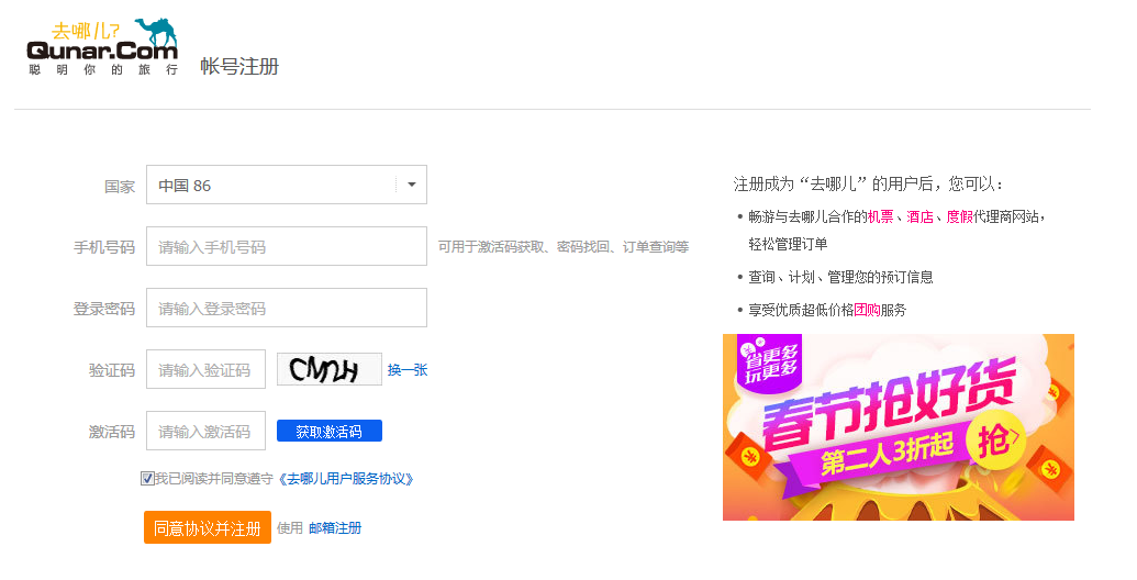 由于手机实名制的政策影响,手机号+验证码的验证方式基本可以确定一个用户的准确信息,因此一般情况下采用3项表单的网站都是使用这种模式验证用户的信息,同时设置密码也精简为1个填写项目,以明文密码替换传统需要用户输入两次密码的形式。