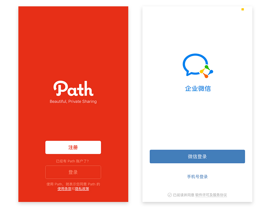 用户必须先进行注册登录,才能正常使用产品功能。社交类、2B类、工作类的产品会使用这种流程。