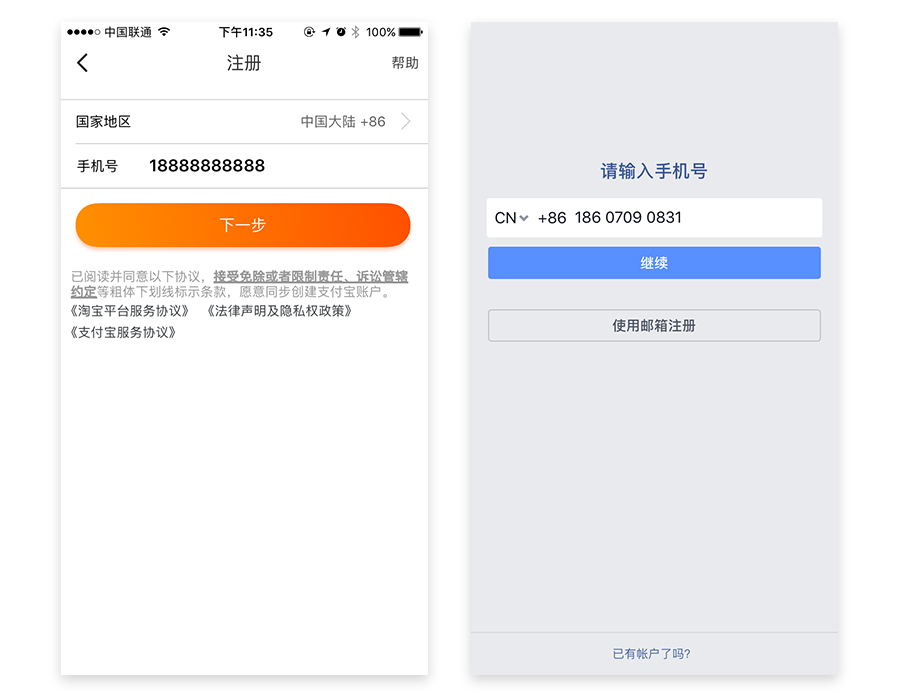 加上手机号码的实名制、全球通业务的普及,使得手机号码也具有了唯一标示性。而且在移动互联网时代,用手机号码作为登录ID,并用短信验证码的形式来验证ID,这些操作流程都基于手机端,特别方便快捷。所以手机号码逐渐取代邮箱成为APP注册登录的主流方式。