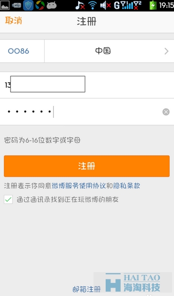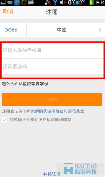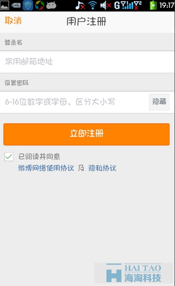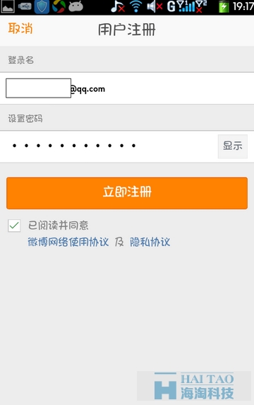 海淘科技通过本图文教程教你使用手机新浪微博客户端注册账号: